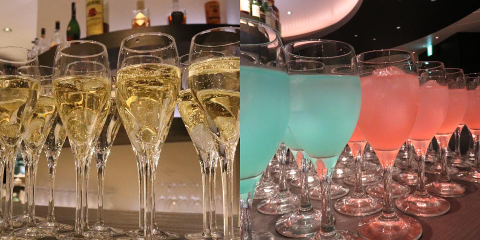 ご宴会にはかかせない、シャンパン・ビール・ウイスキー・焼酎・日本酒・カクテル、ソフトドリンクなど豊富なアイテムをご用意いたします。