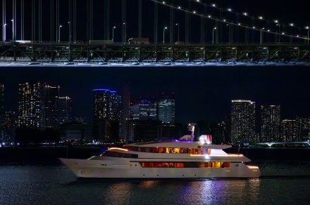 陸上クラブハウスにてシャンドン・ロゼで乾杯したら、野菜とシーフードにこだわった前菜から始まり、人気の洋風茶碗蒸し、鮮魚を用いた魚介料理に続いて、国産牛フィレ肉をメイン料理にした本格フレンチディナーコースを。デザート時には特製ケーキが登場。食後には、桟橋を渡り船に移動したらフリーフローで気兼ねなくドリンクをいただける東京湾夜景ナイトクルーズが楽しめます。※写真はイメージです。